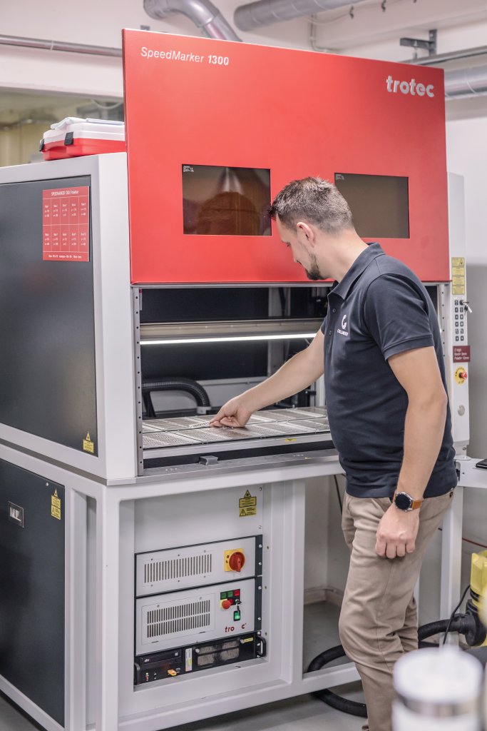At Märksystem’s facility in Lomma, approximately 25 people work with the production of signs, decals and labelling products. An important product area is the company’s proprietary pipe marking solutions, which include the well-known pipe marking tape Flo-Code as well as engraved signs and trays for armature and component marking. The product range includes everything from information and evacuation signs to warning projectors and fire signs.